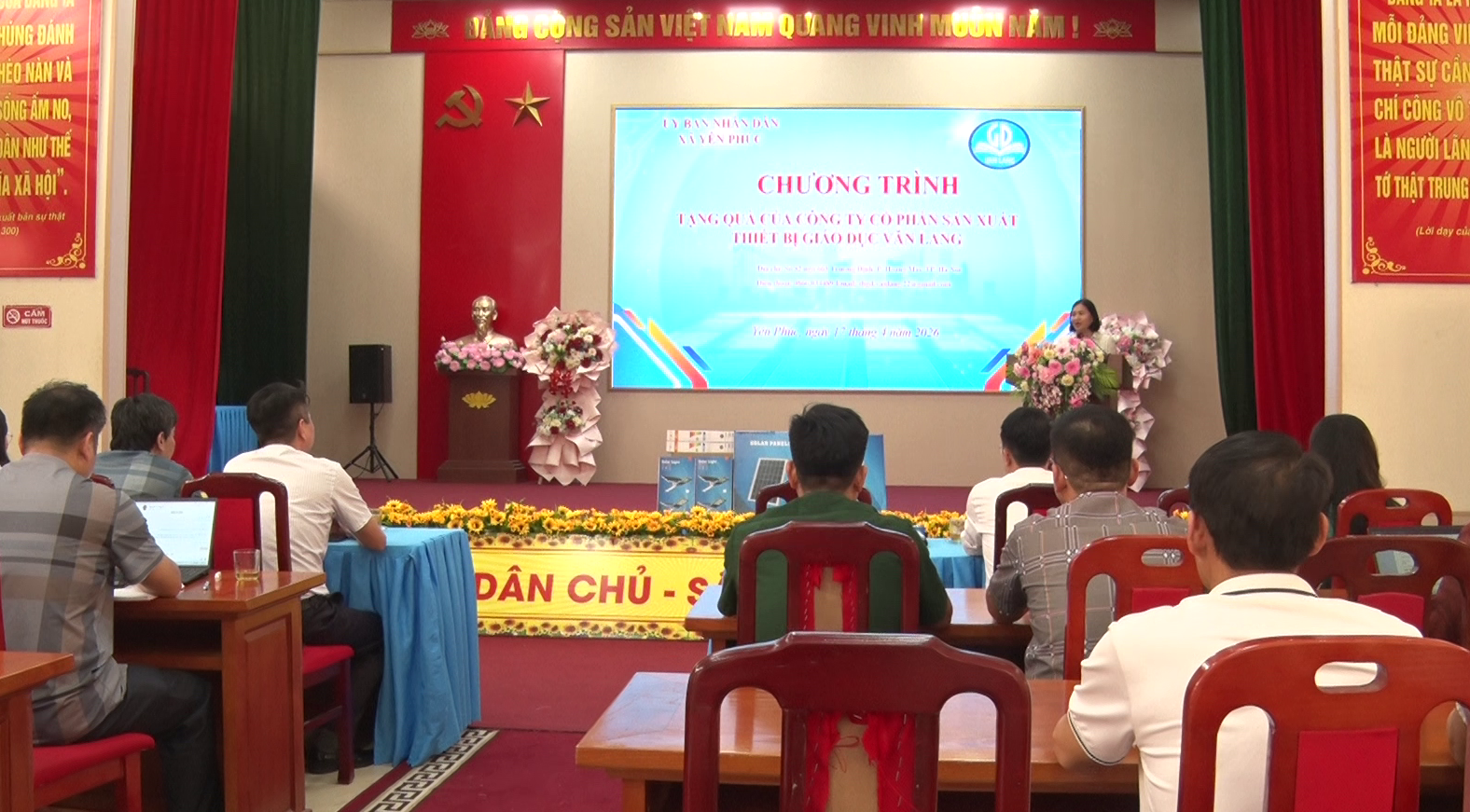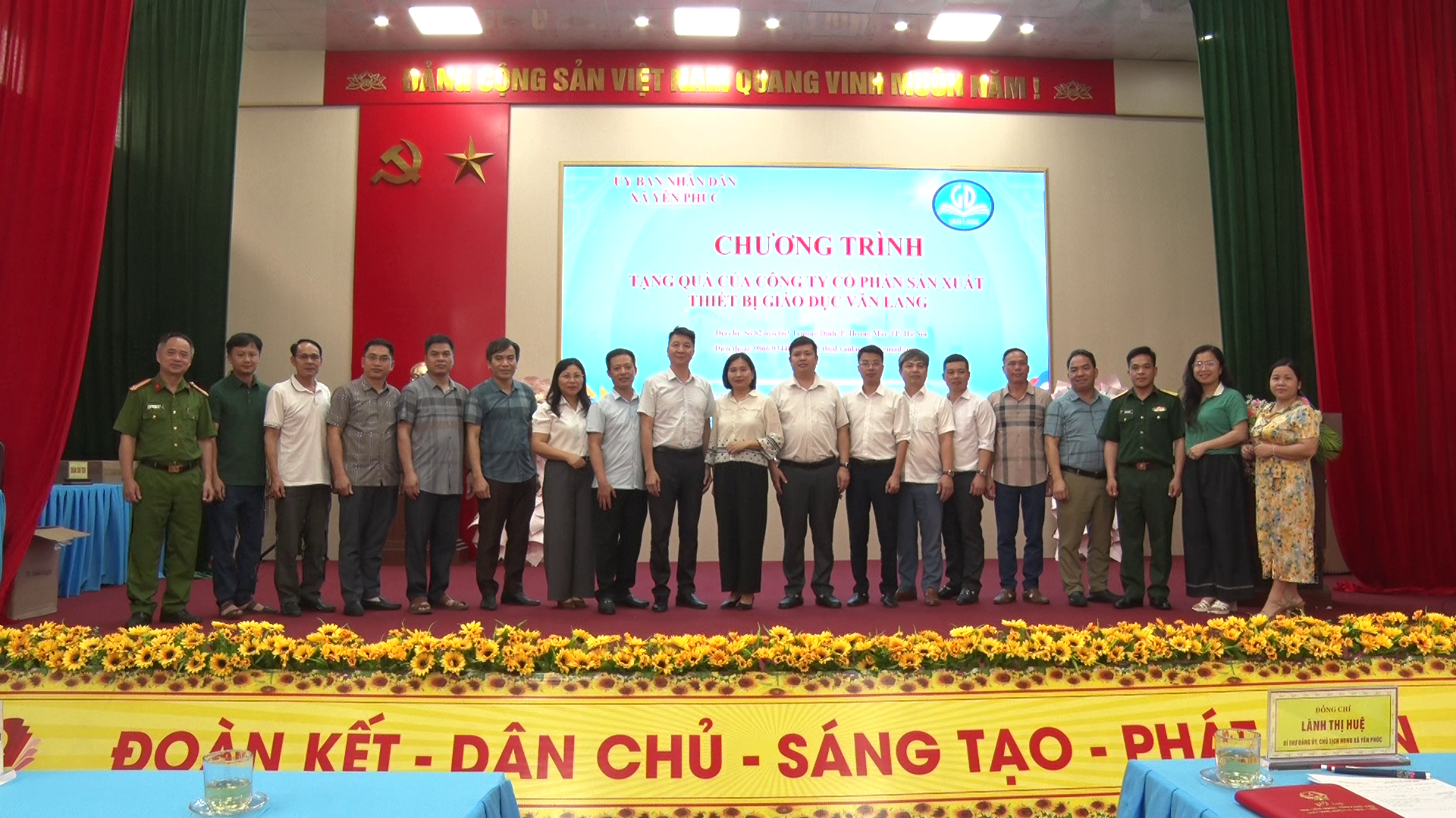 Chiều ngày 17/4/2026 Công ty cổ phần sản xuất thiết bị Giáo dục Văn Lang số 82 ngõ 663 Trương Đinh, phường Hoàng Mai, Thành phố Hà Nội tặng bóng đèn năng lượng thắp sáng đường thôn cho xã Yên Phúc. Dự Chương trình có đồng chí Lành Thị Huệ, Bí thư Đảng ủy, Chủ tịch HĐND xã; đồng chí Lô Việt Phúc, phó Bí thư thường trực Đảng ủy; đồng chí Nông Hồng Giang, Ủy viên Ban Thường vụ Đảng ủy, Phó Chủ tịch UBND xã; đồng chí Triệu Văn Hòa, Uỷ viên Ban Thường vụ Đảng ủy, Chủ tịch Ủy ban Mặt trận tổ Quốc Việt Nam xã Yên Phúc cùng các đồng chí lãnh đạo các cơ quan, ban ngành, tổ chức chính trị xã hội của xã; về phía Công ty có đồng chí Nguyễn Huy Tùng, Giám đốc cùng các đồng chí đang công tác tại Công ty cổ phần sản xuất thiết bị Giáo dục Văn Lang.