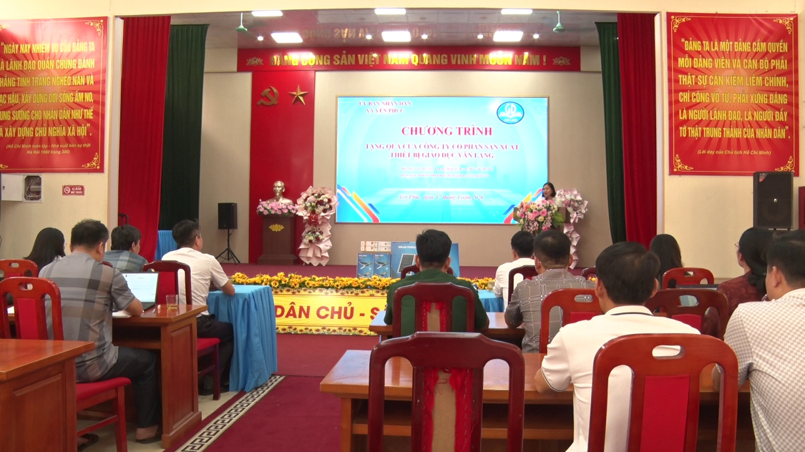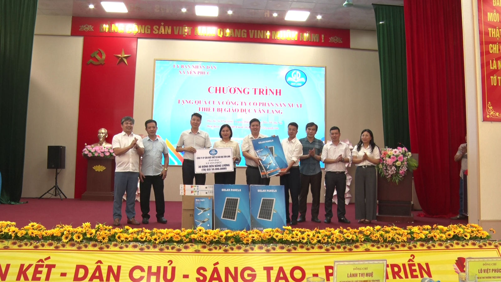 Công ty cổ phần sản xuất thiết bị Giáo dục Văn Lang trao tặng bóng đèn năng lượng cho xã Yên Phúc