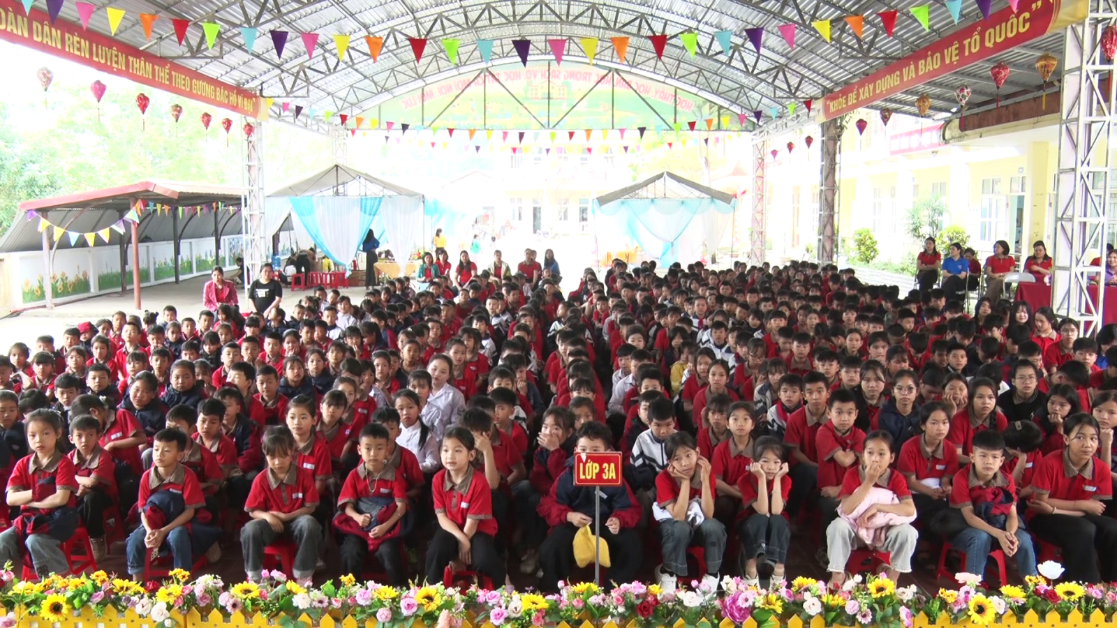 Toàn cảnh buổi mít tinh ngày thành lập Đoàn TNCS Hồ Chí Minh của trường TH, THCS Bình Phúc, xã Yên Phúc