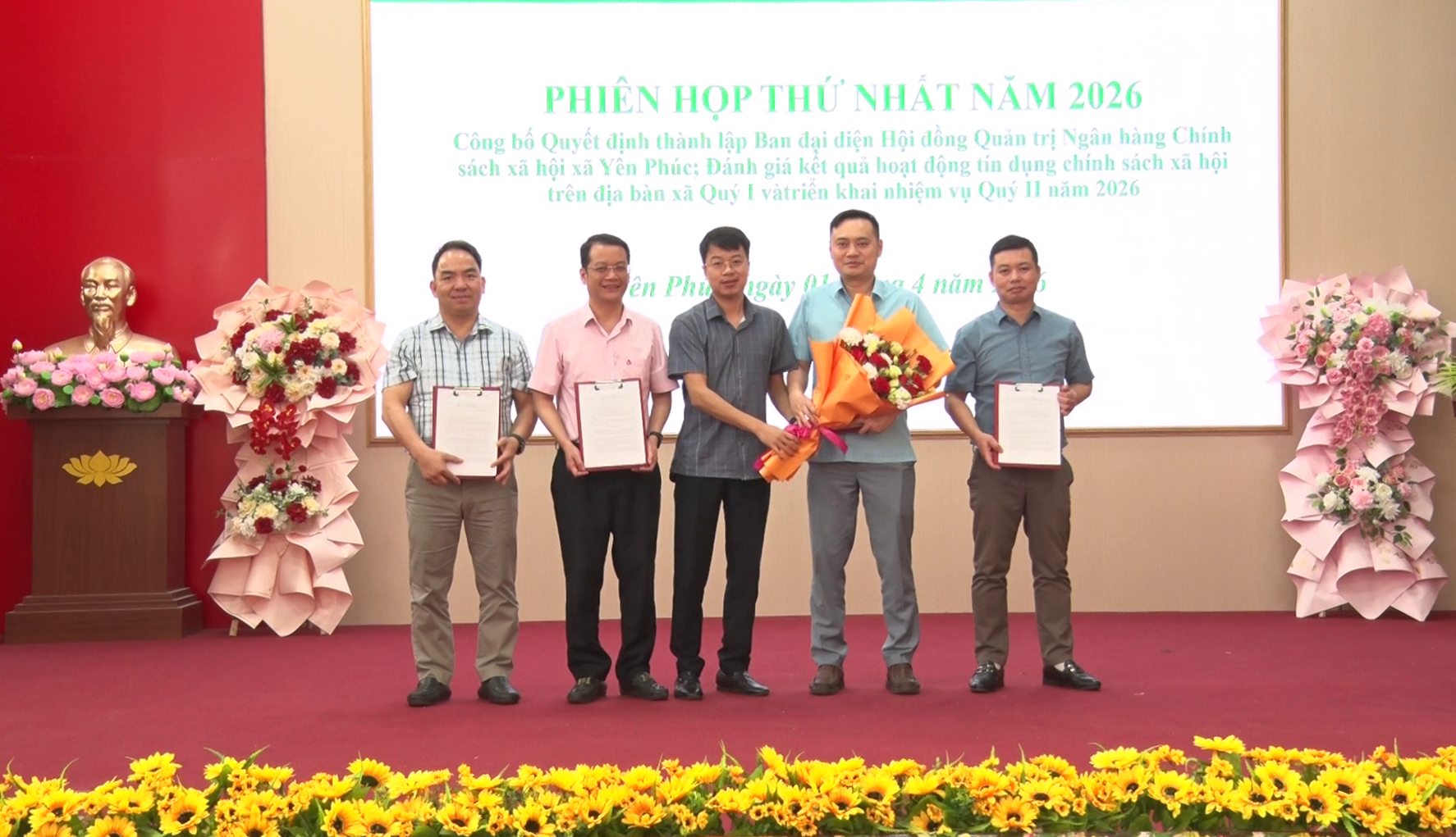 Theo Quyết định số 150, ngày 4/3/2026, Ban đại diện Hội đồng Quản trị Ngân hàng Chính sách xã hội xã Yên Phúc gồm có 4 thành viên. Đồng chí Mai Thanh Tuyền, Phó Bí thư Đảng ủy, Chủ tịch UBND xã làm Trưởng Ban đại diện. Ban đại diện Hội đồng Quản trị Ngân hàng chính sách xã đã phân công nhiệm vụ cụ thể cho các thành viên để đạt hiệu quả hơn.