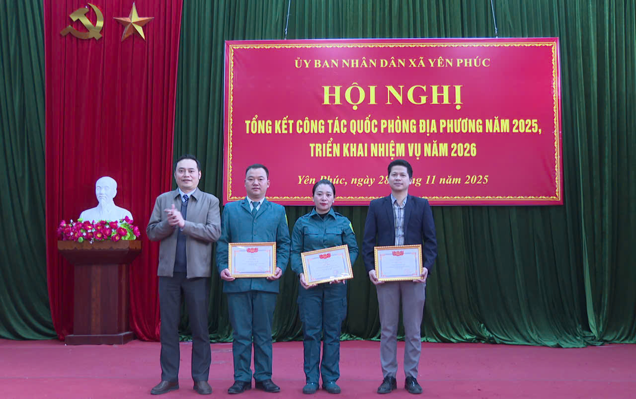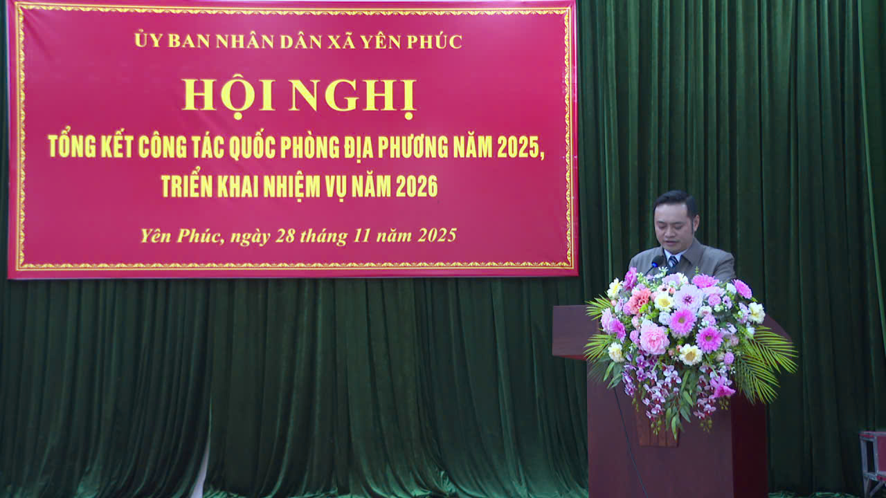 Ngày 28/11/2025, UBND xã Yên Phúc tổ chức Hội nghị tổng kết nhiệm vụ quốc phòng địa phương, công tác giáo dục quốc phòng và an ninh năm 2025; triển khai nhiệm vụ năm 2026. Dự Hội nghị có đồng chí Lành Thị Huệ, Bí thư Đảng ủy, Chủ tịch HĐND xã; đồng chí Lô Việt Phúc – Phó Bí thư Thường trực Đảng ủy; đồng chí Mai Thanh Tuyền, Phó Bí thư Đảng ủy, Chủ tịch UBND xã; đồng chí Triệu Văn Hòa, Chủ tịch Ủy ban Mặt trận Tổ quốc Việt Nam xã Yên Phúc.