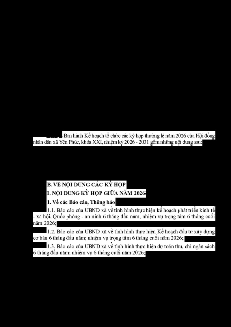 | Tiêu đề văn bản | Nghị Quyết ề Kế hoạch tổ chức các kỳ họp thường lệ năm 2026 Hội đồng nhân dân xã Yên Phúc, khóa XXI, nhiệm kỳ 2026 - 2031 | ||